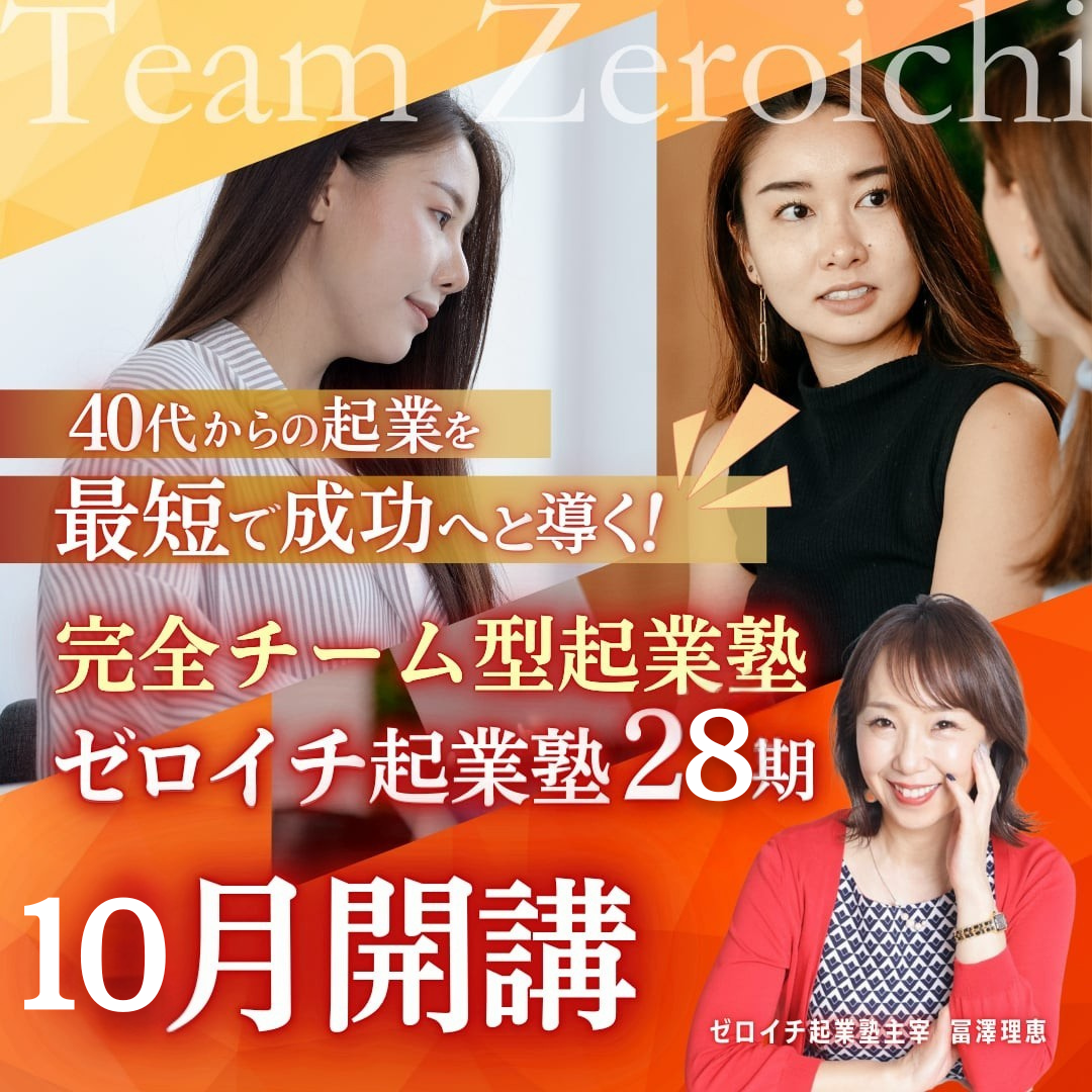 ゼロイチ起業塾を主宰し、受講生・卒業生は200名以上。受講生はクロージング率100%を達成、月商7桁・8桁を続々と達成!!
